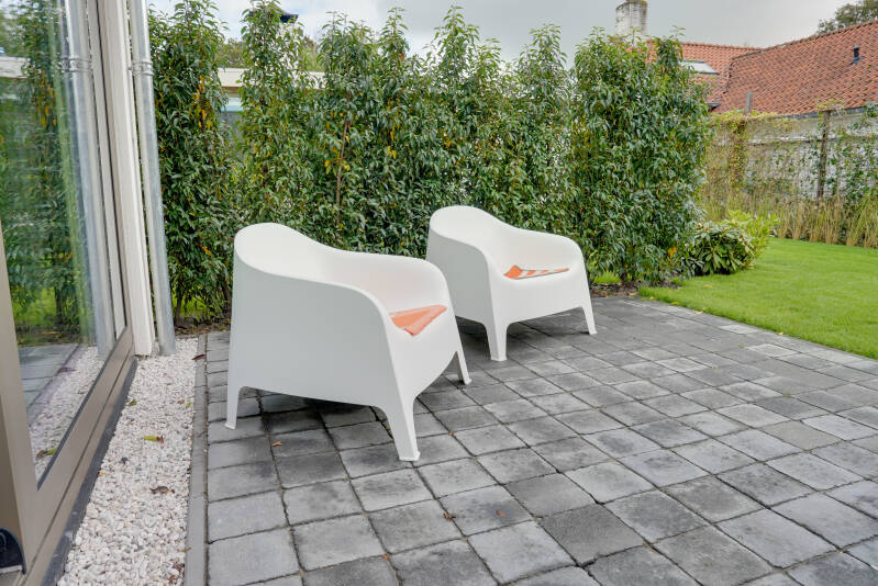 - gelijkvloers met eigen ingang tuin, terras en fietsenstalling;